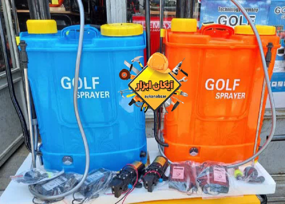 سمپاش شارژی گلف در انواع دوکاره شارژی و دستی با باتری 8 ولت و 12 آمپر می باشد. در دو رنگ آبی و نارجی عرضه شده است.